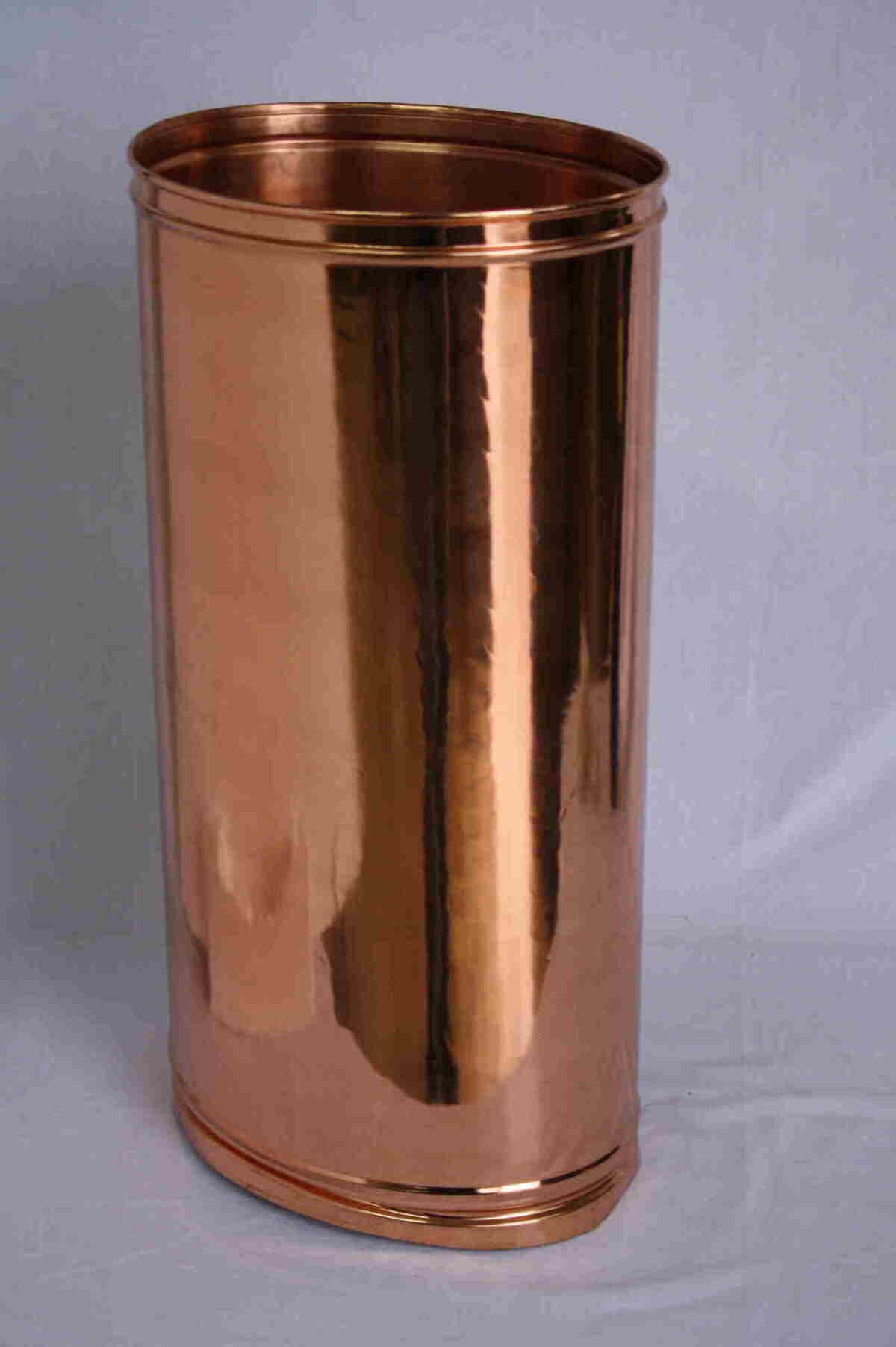 Portaombrelli in rame lavorato a mano, forma ovale con trattamento antimacchia. Dimensioni h 48 x 25 cm.